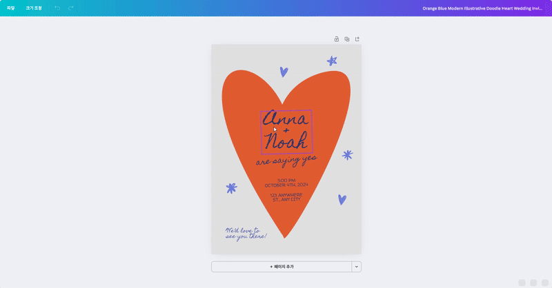 이미지를 옮기거나, 텍스트 상자를 원하는 위치에 배치하는 등 모든 편집 과정이 매우 직관적이죠.